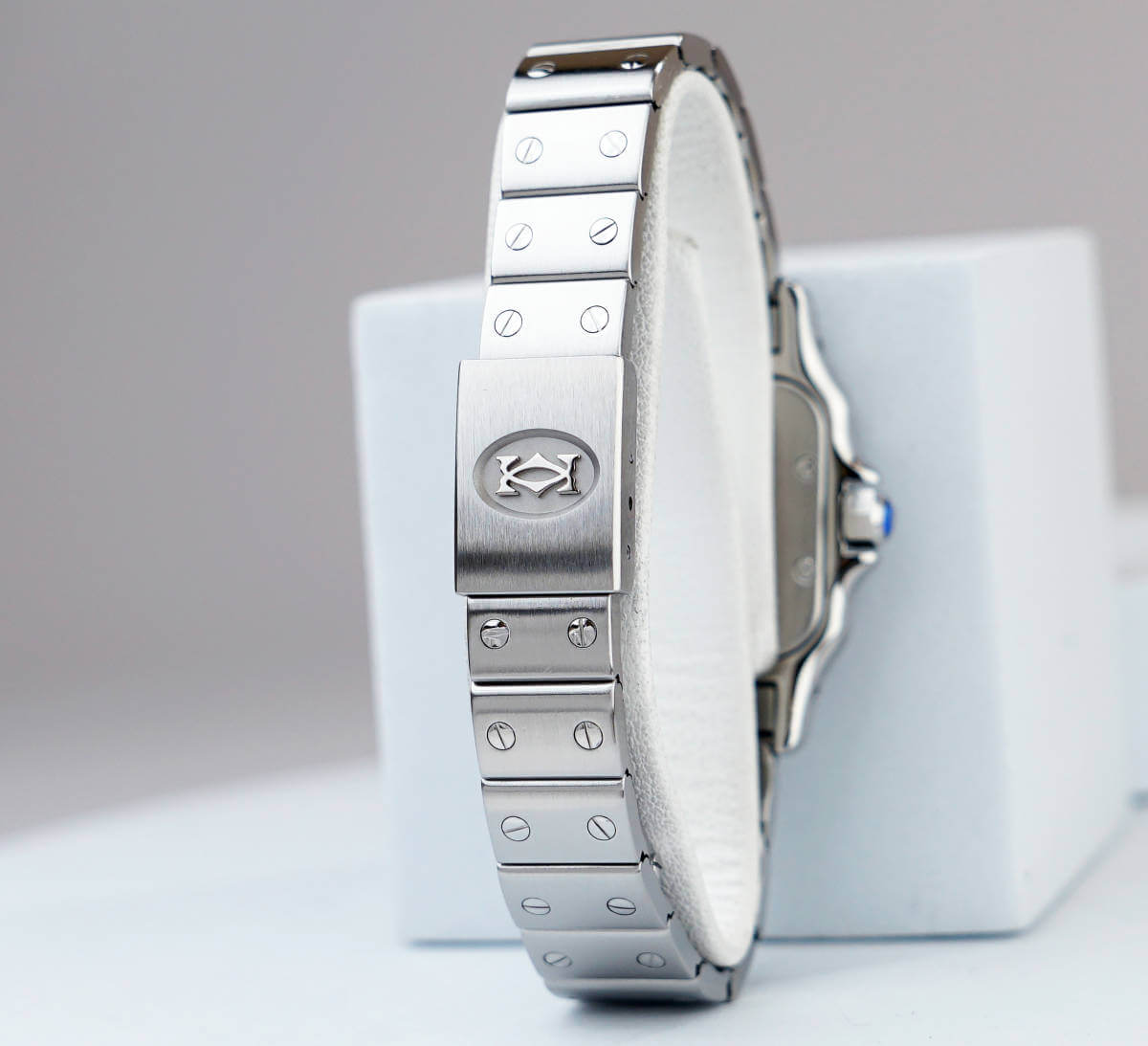 Cartier Santos Galbee Silver Blue Roman Index SM inkl. Cartier Box in ausgezeichnetem Zustand.