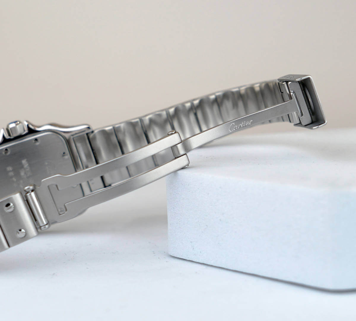 Cartier Santos Galbee Silver Blue Roman Index SM