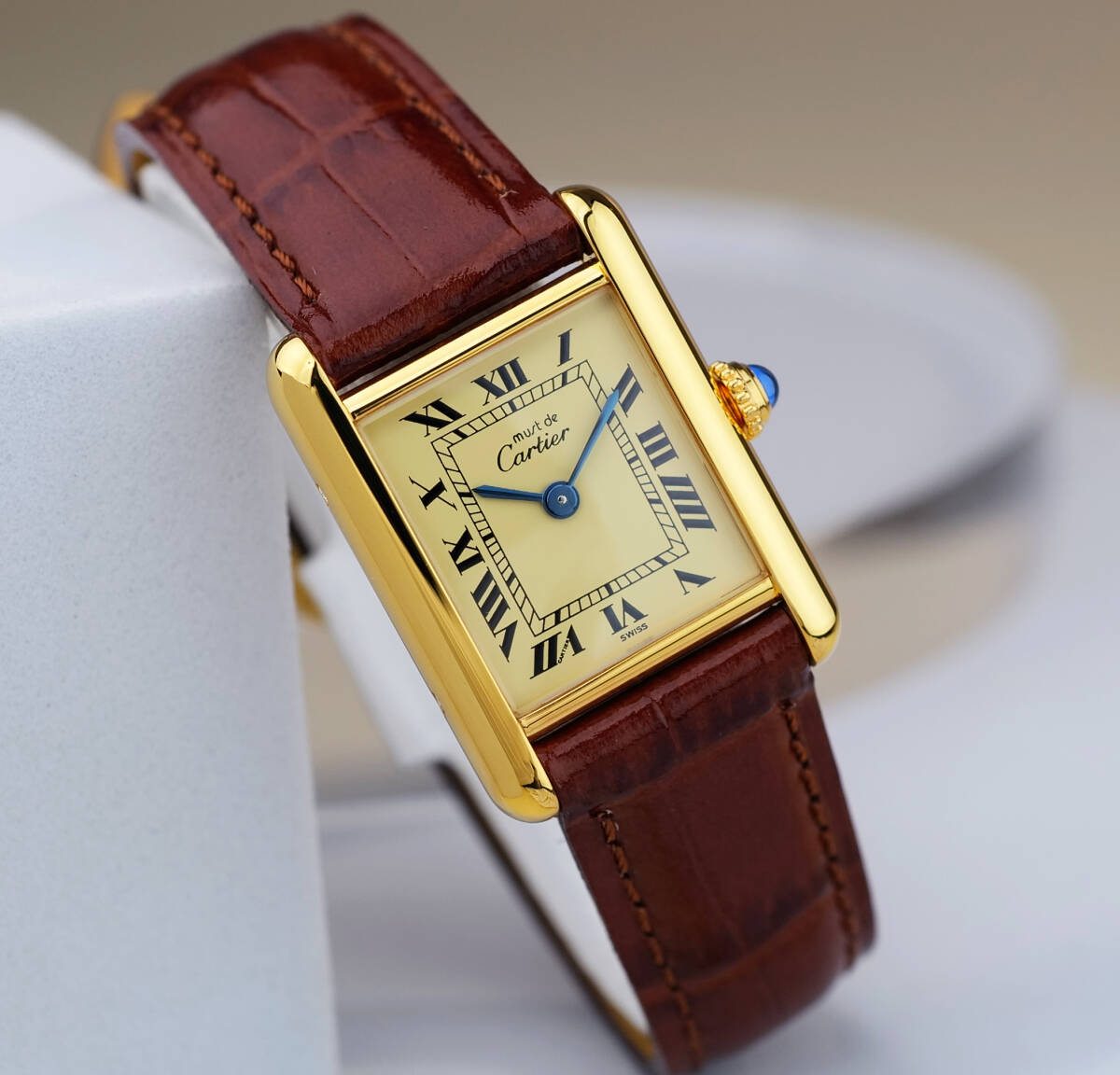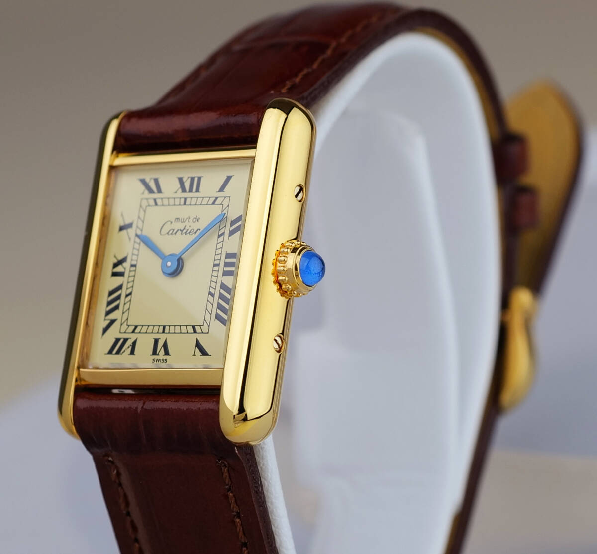Cartier Must Tank Ivory Roman Index SM mit Dornschließe.